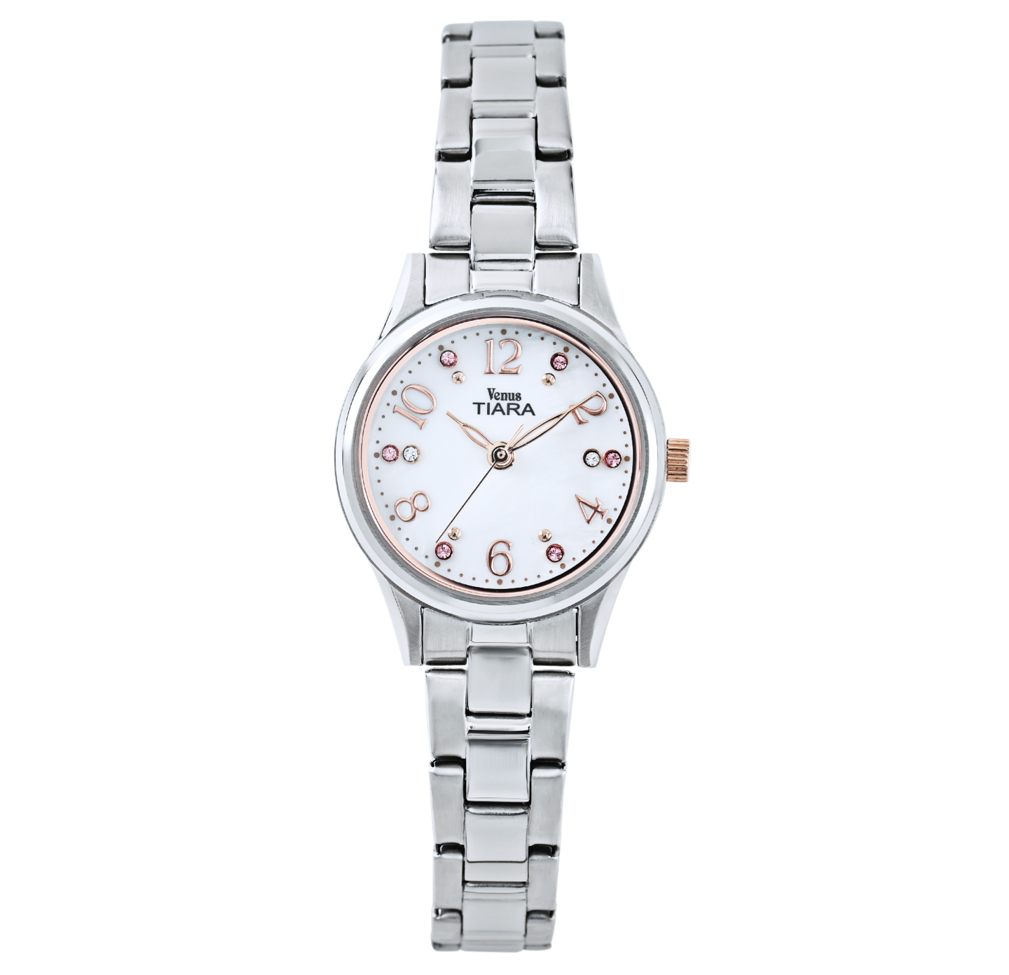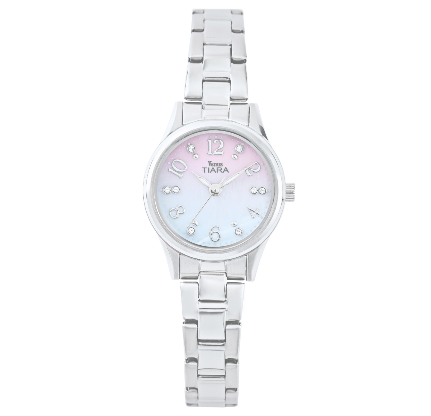 HOME | ALL ITEMS | 26SSmodel | VT102-PKBL VT102-PKBL¥35,200 (税込) [仕様] 駆動方式 電池式クォーツ 携帯精度 平均月差±20秒以内 防水機能 日常生活防水(3気圧) 文字盤カラー ピンクブルー(マザーオブパール) [外装] ケース素材 ステンレススチール バンド素材 ステンレススチール ガラス素材 ミネラルクリスタル ケースサイズ 26.0mm x 32.5mm 腕周りサイズ 最長175mm Color Variation