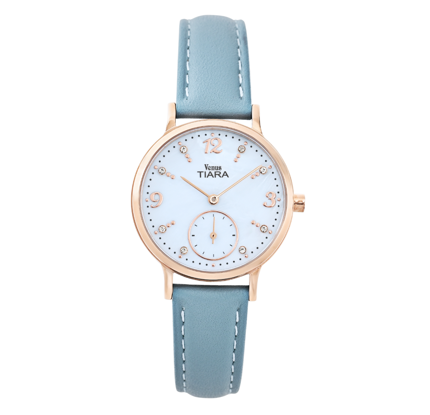 HOME | ALL ITEMS | 26SSmodel | VT108-LB VT108-LB¥35,200 (税込) [仕様] 駆動方式 電池式クォーツ 携帯精度 平均月差±20秒以内 防水機能 日常生活防水(3気圧) 文字盤カラー ライトブルー(マザーオブパール) [外装] ケース素材 ステンレススチール バンド素材 本牛革 ガラス素材 ミネラルクリスタル ケースサイズ 30.0mm x 36.5mm 腕周りサイズ 最長175mm Color Variation
